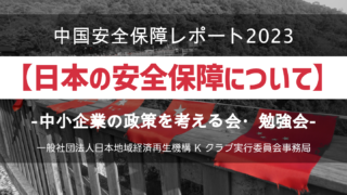 中小企業の政策を考える会 中国安全保障レポート2023【日本の安全保障について】-中小企業の政策を考える会・勉強会- 内容岸田首相は、2023-27年度の防衛費について、総額約43兆円とする方針を固めました。現在の中期防衛力整備計画(19-23年度)の27兆4,700億円程度から大幅増となり、過去最高となります。これらは、中国・ロシア・北朝鮮といった近隣諸... 2023.03.15 中小企業の政策を考える会