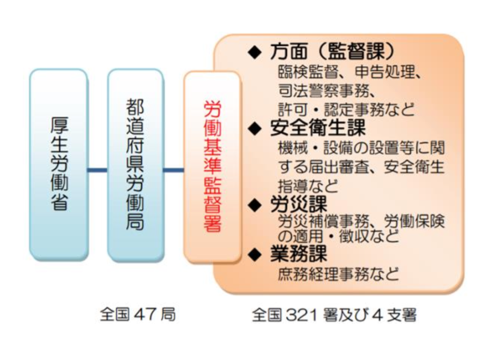 労働基準監督署は、働くことに関係する法律を守るための場所、働く人たちの権利や安全を守るためにサポートしてくれる組織です。