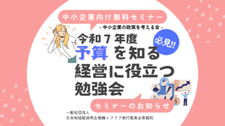 中小企業の政策を考える会 令和7年度予算を知る!経営に役立つ勉強会 中小企業支援策の未来を知る!令和7年度予算案 令和7年度、政府は中小企業支援をさらに強化!補助金や融資制度の拡充、デジタル化支援、そして地域連携を軸に、新たな政策が展開されます。今回の予算案、具体的にどんな支援が受けられるのか気になりません... 2024.12.18 中小企業の政策を考える会